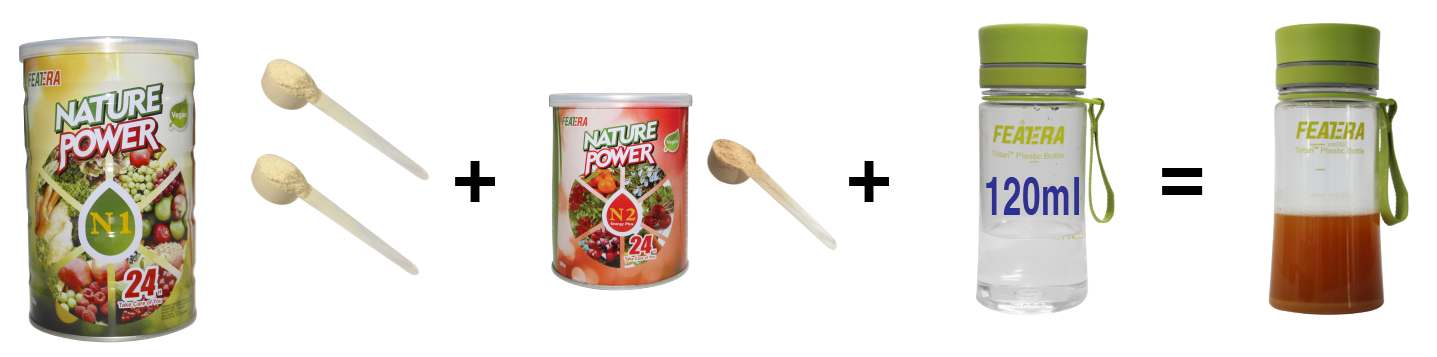 Pha 02 muỗng N1 với 01 muỗng N2 cùng 120ml nước, lắc đều. Ngày uống từ 01-04 ly, trước khi ăn 30 phút hoặc lúc bụng đói (tốt nhất buổi sáng). Đọc kỹ chuyển hóa N1+N2 trước khi uống. Ngon hơn khi pha với nước lạnh.