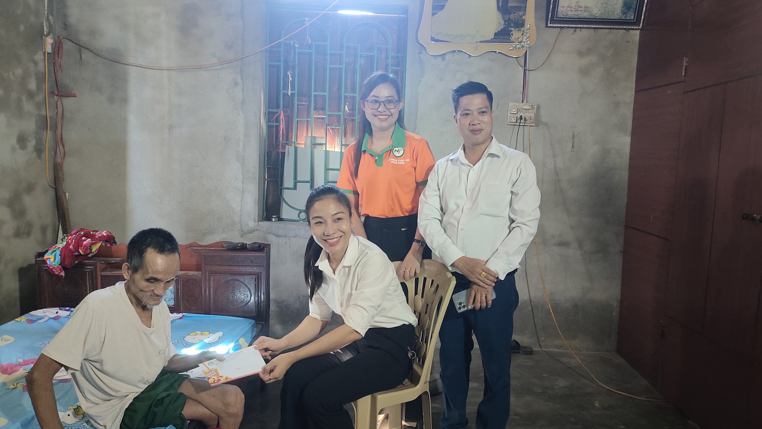 Đoàn đến thăm hỏi và trao tặng trực tiếp cho mẹ Việt Nam anh hùng Nguyễn Thị Duân năm nay tròn 100 tuổi ở xóm 6 và trao tặng 3 suất quà cho các thương bệnh binh, nạn nhân chất độc da cam có hoàn cảnh khó khăn ở trên địa bàn xã